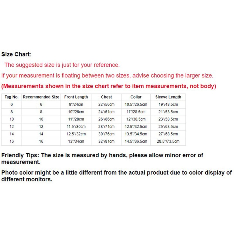 | Tag No. | Recommended Size | Front Length | Chest | Collar | Sleeve Length |