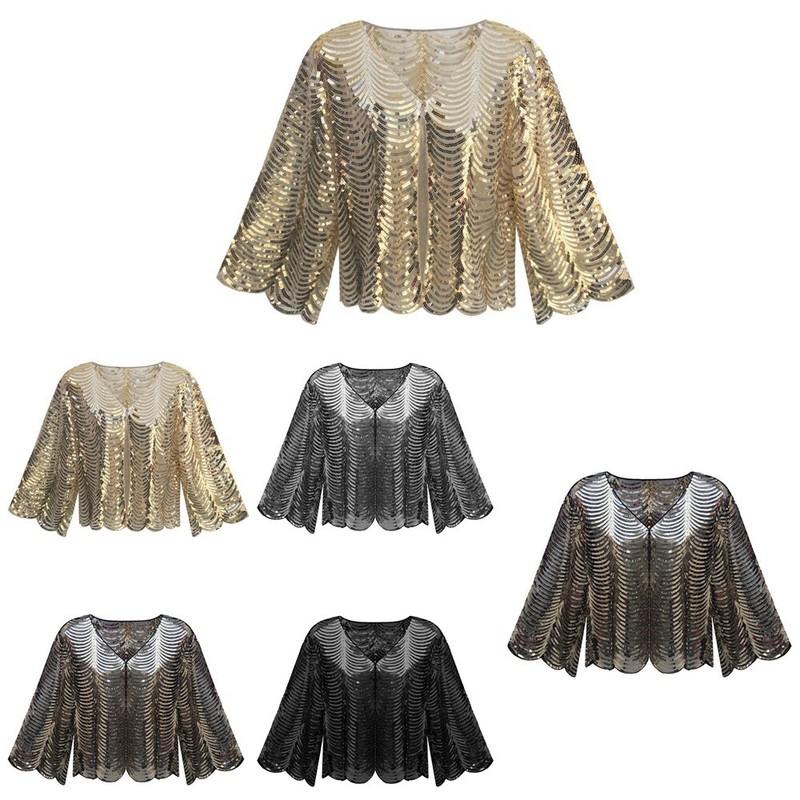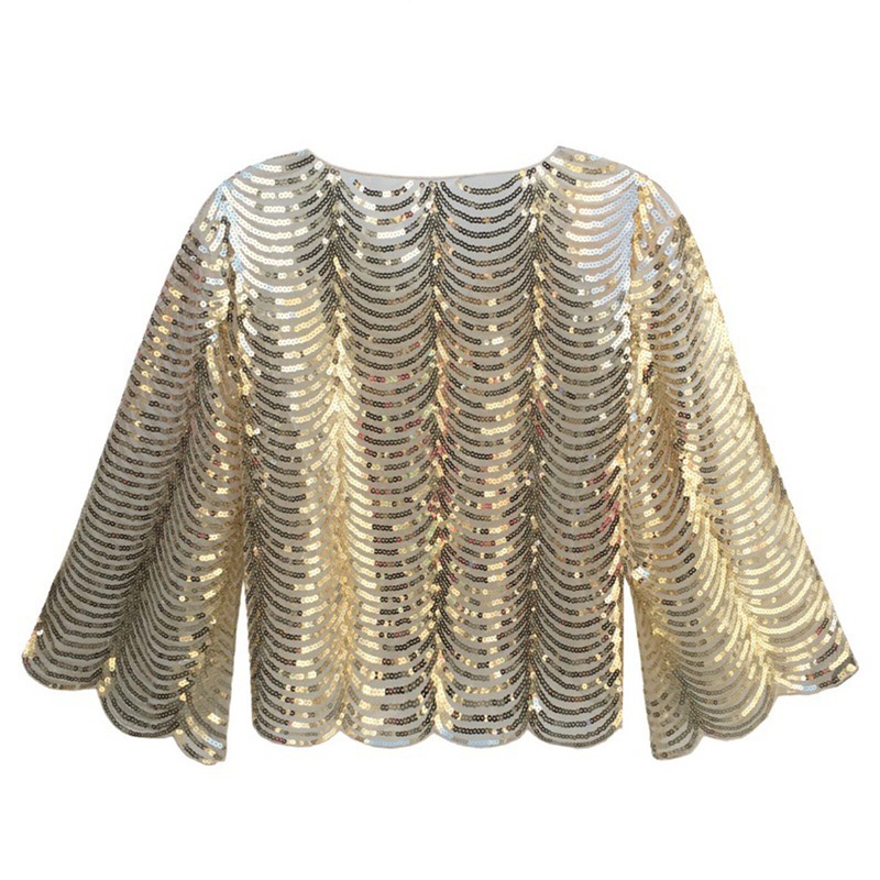 All over sequins bring a dazzling look to make you eye-catching in the crowd. Front hidden closure prevents cardigan slipping off.