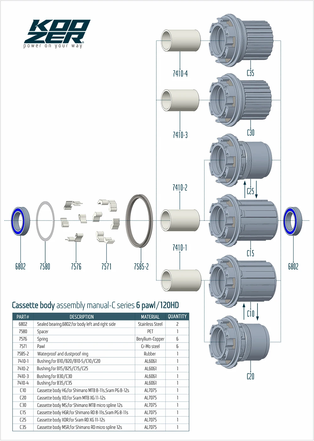 >Cassette body: 6 pawls-3 teeth/120 HD,HG/XD/MS, MTB 8-12S