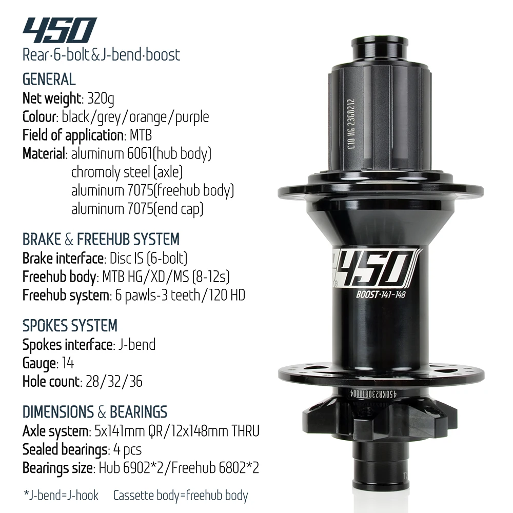 24' New 450 6-bolts/J-bend MTB 15x110/5x141/12x148mm Boost