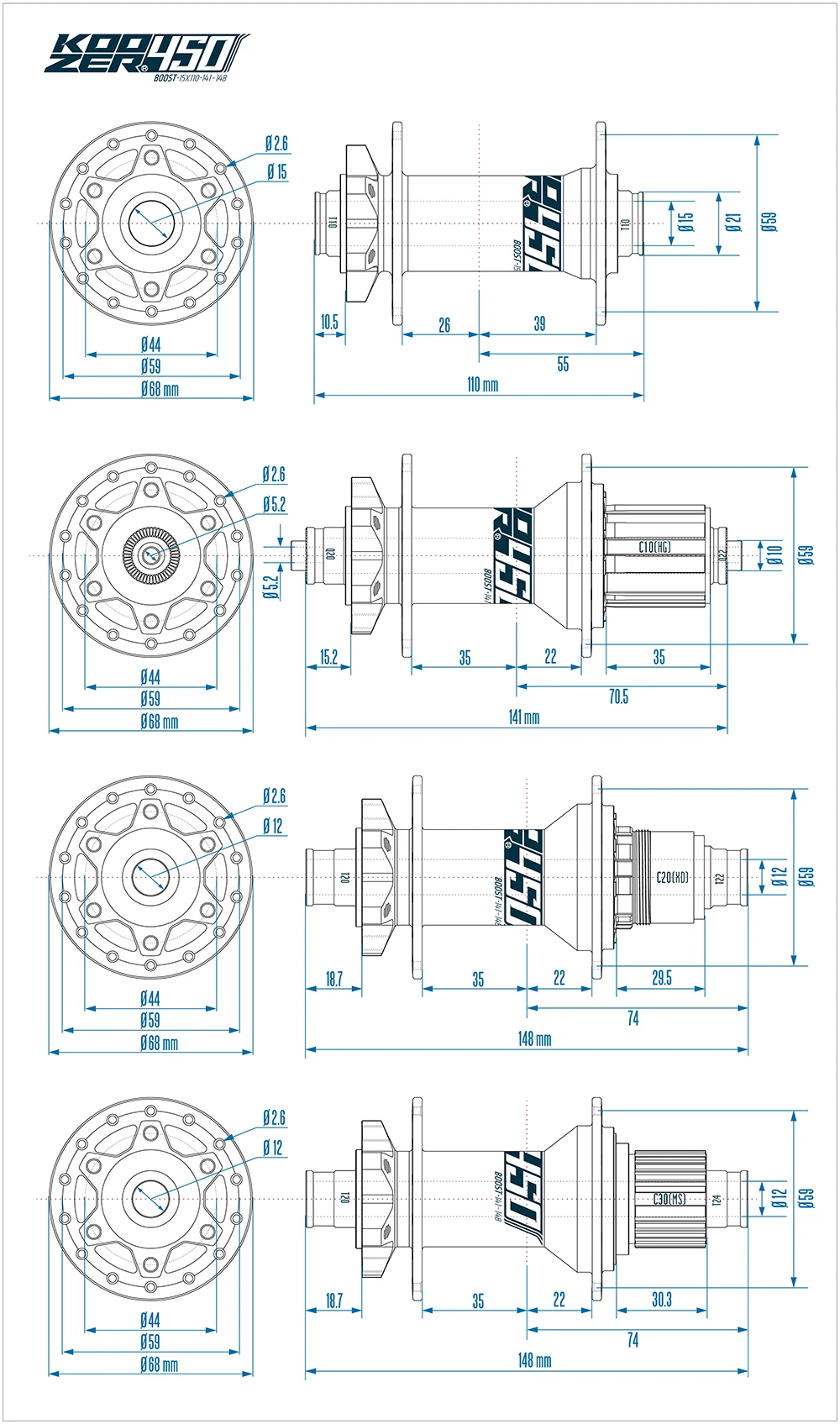 Boost = front 15x110mm / rear 5x141 or 10x141mm QR /12x148mm TA