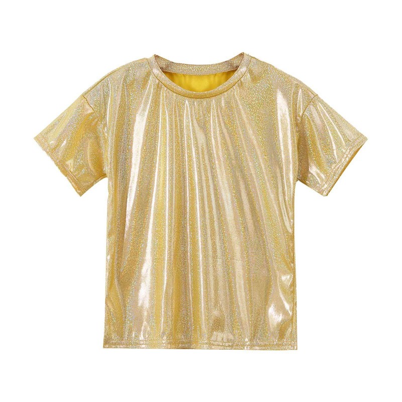 Kids Girls and Boys Metallic Shiny T-shirt Sparkly Jazz Dance Tops.