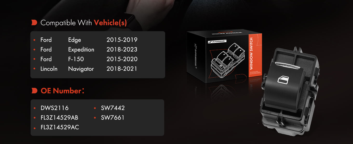 A-Premium Rear Side Power Window Switch for Ford F-150 2015-2020 Edge 2015-2019