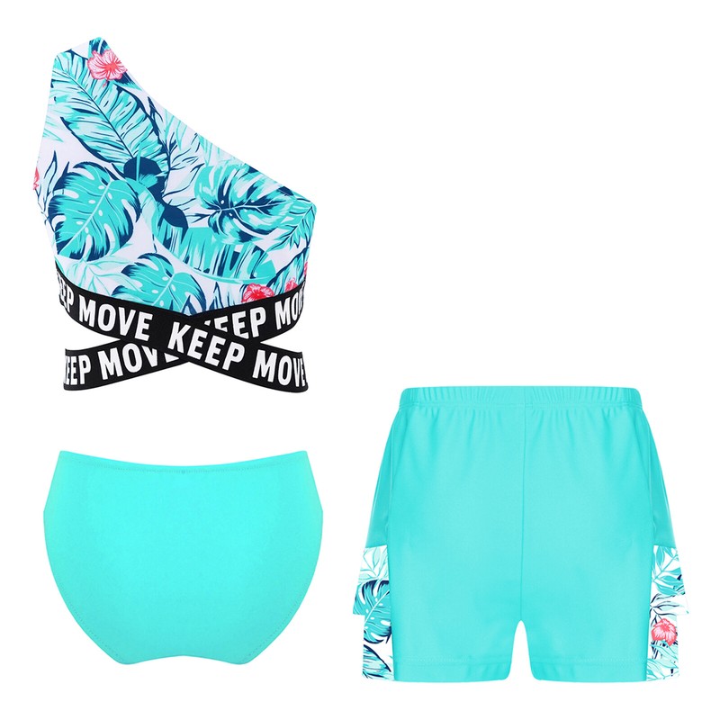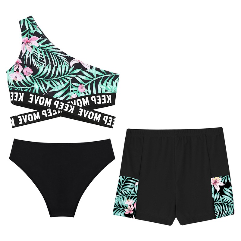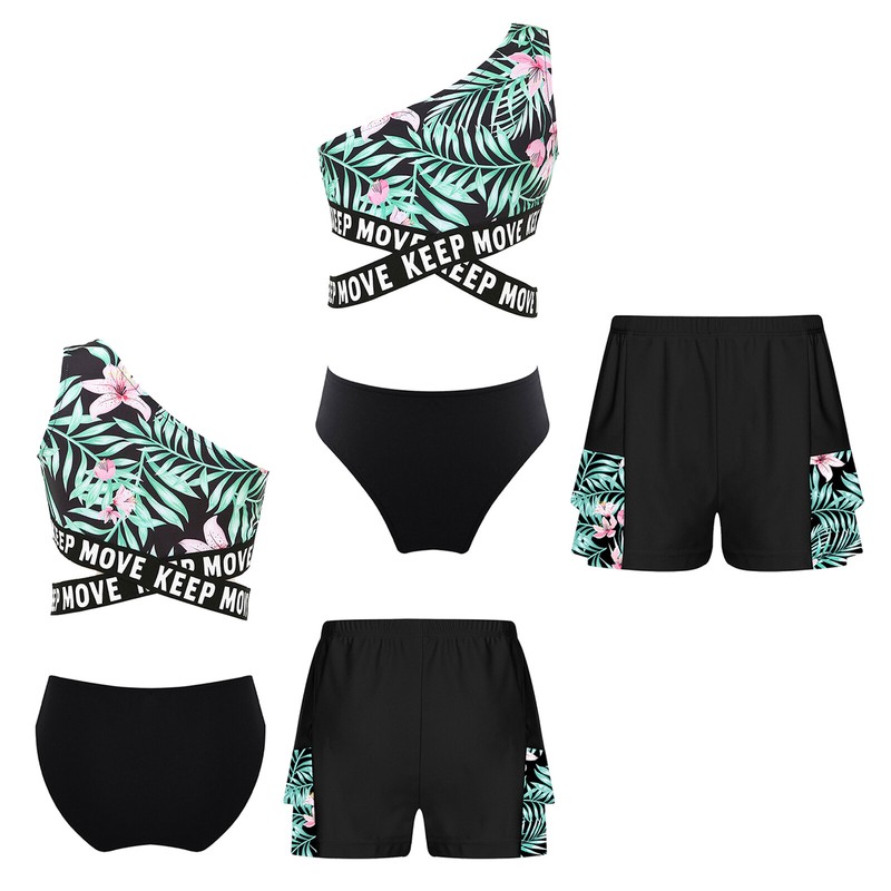 Vibrant floral print makes girls more lovely and beautiful. Quickly-dry fabric keeps girls always feel cool and dry.