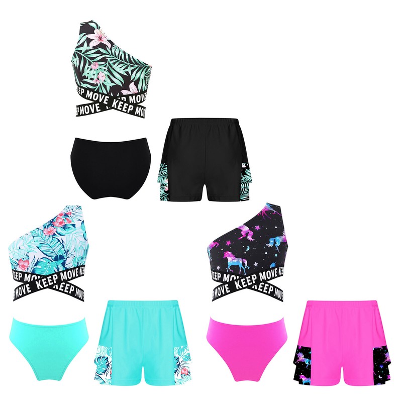 Designed with single shoulder, sleeveless, cross elastic bands around waist, making girls look active and fashionable.