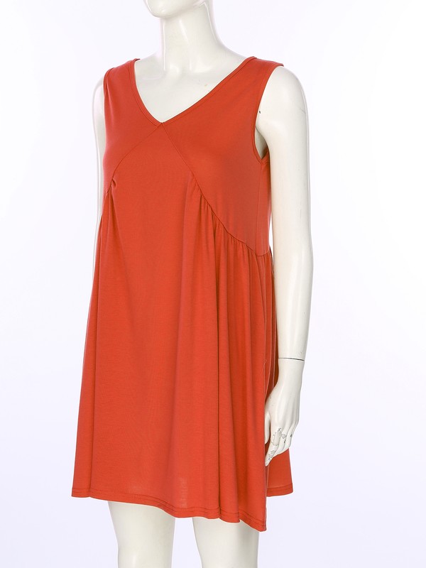 This sleeveless dress is featured in a V-neck silhouette with ruffled detailing. The ruffled hem swings gracefully as you walk.