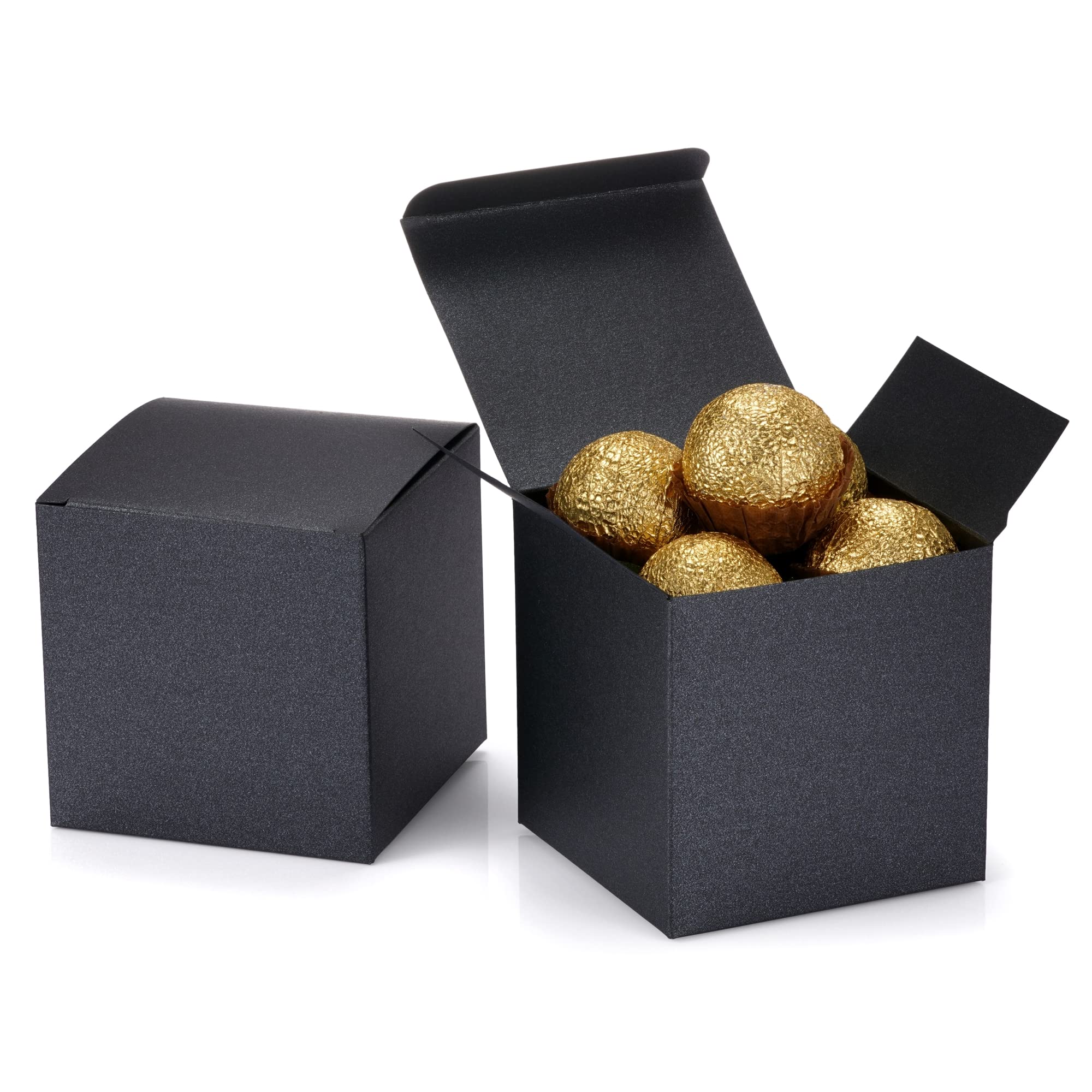 12pcs Glitter Pearlescent Paper Treat Gift Boxes with Lids 3x3x3 (Black)