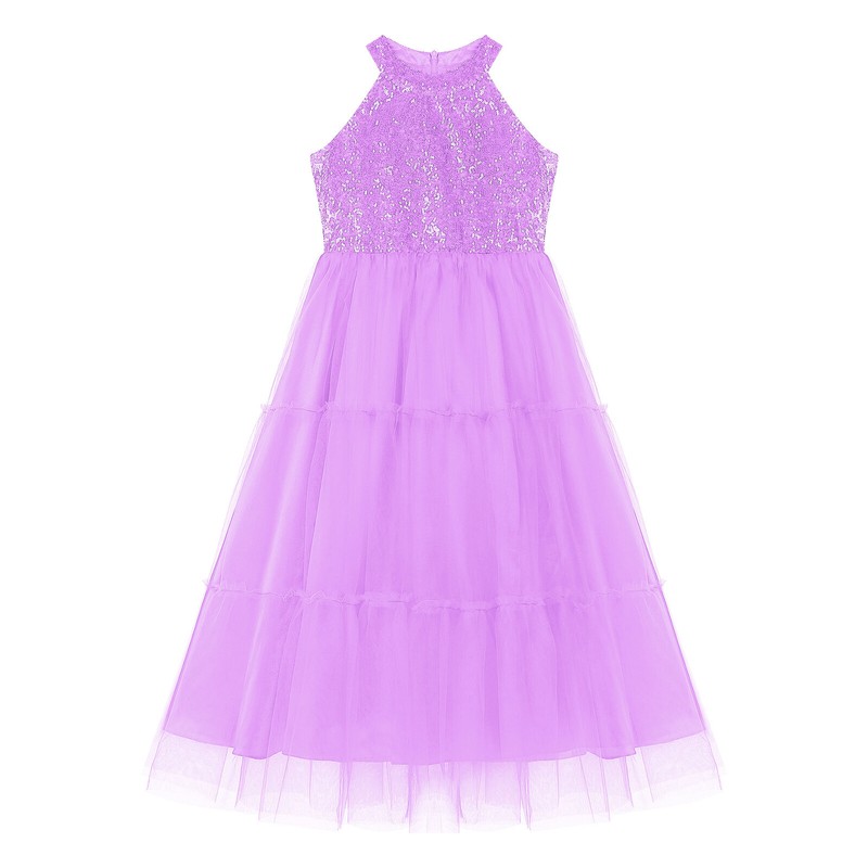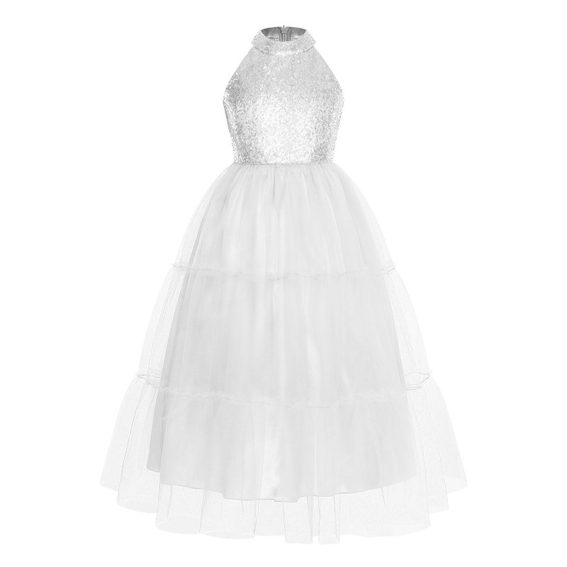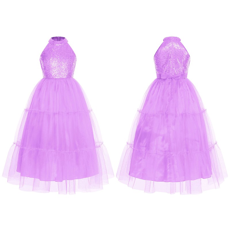 Sparkly sequins make girl dazzling and eye-catching. The dress makes girl look like an elegant princess, which is a perfect gift for girls.