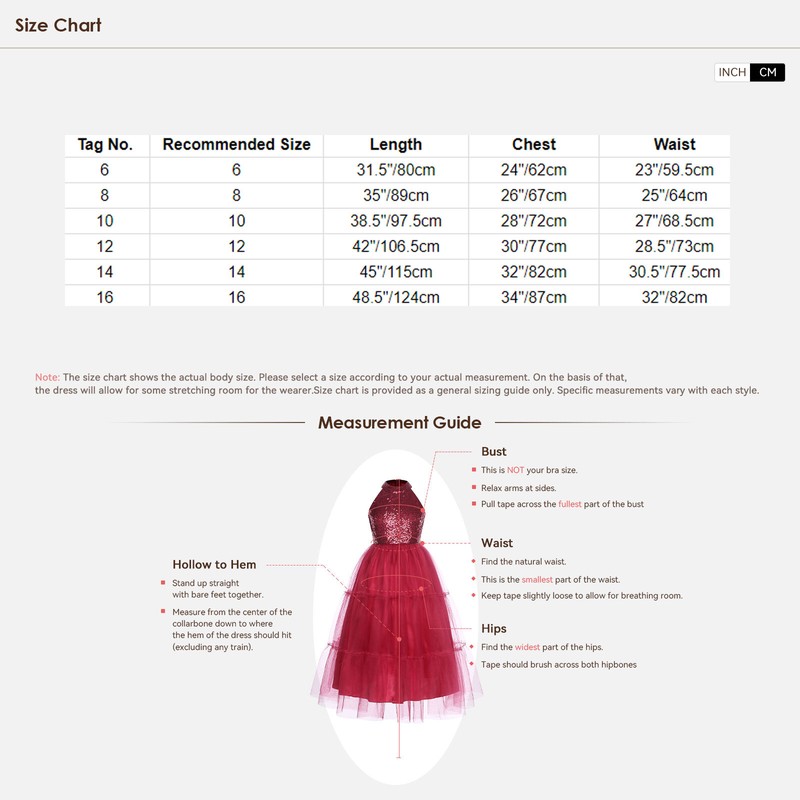 Size Table means age ranges for girls, but they are for general guidance only. Hand wash in cold recommended, hang dry.Size Chart: The suggested size is just for your reference. If your measurement is floating between two sizes, advise choosing the larger size. (Measurements shown in the size chart refer to item measurements, not body)