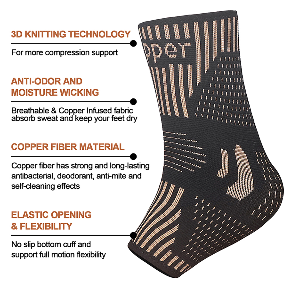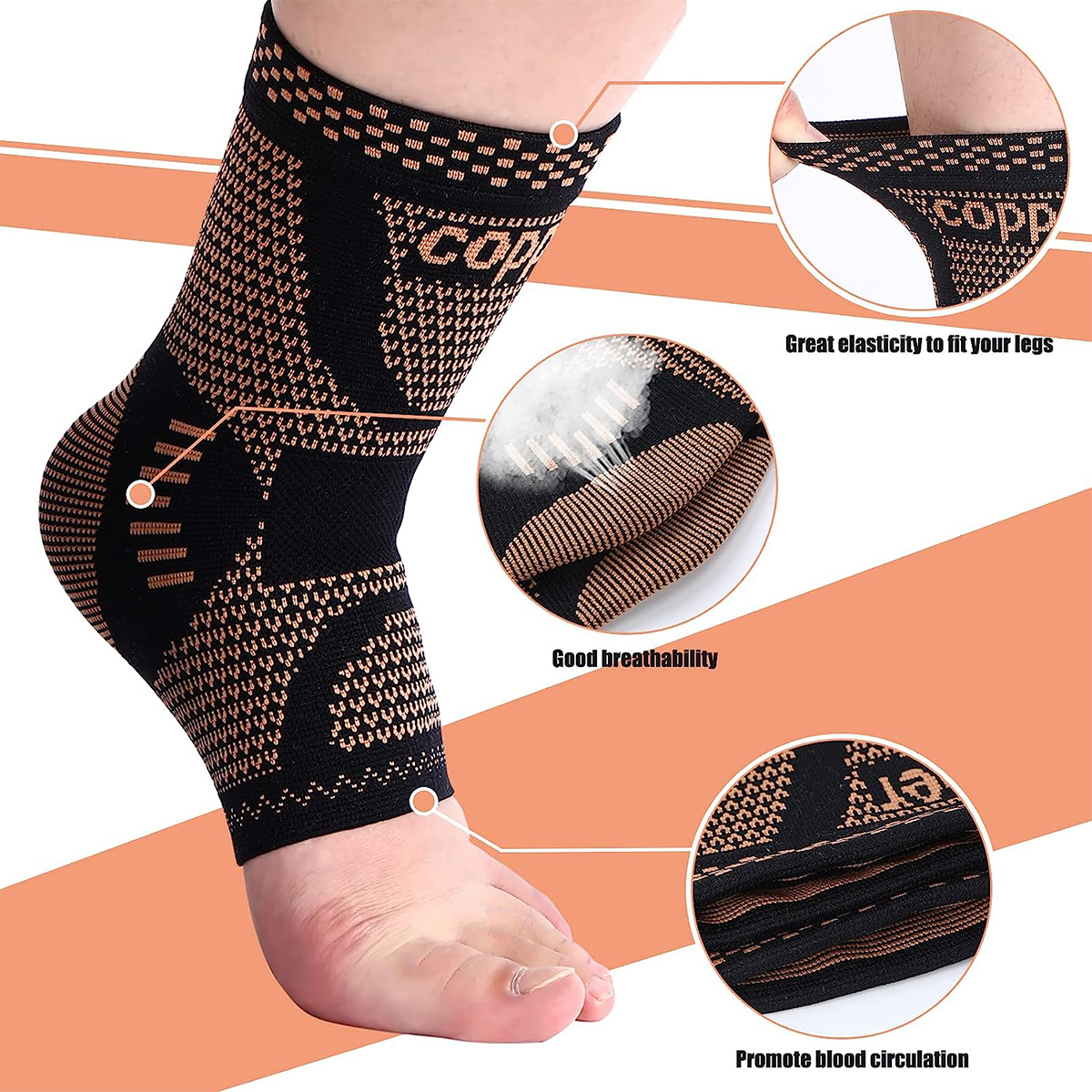 【Comfortable & Breathable】Ankle Support got a well balance between compression and comfort, premium ultra-thin copper ankle brace will apply even compression to the joint.The air knit fabric can instantly absorb and evaporate large amounts of water,circular breathing.Breathable,fast-dry and absorbing sweat,lightweight.As thin and light as a feather,you can wear it under the socks or sleep with it,you don't even feel it, So you can wear them all day long.