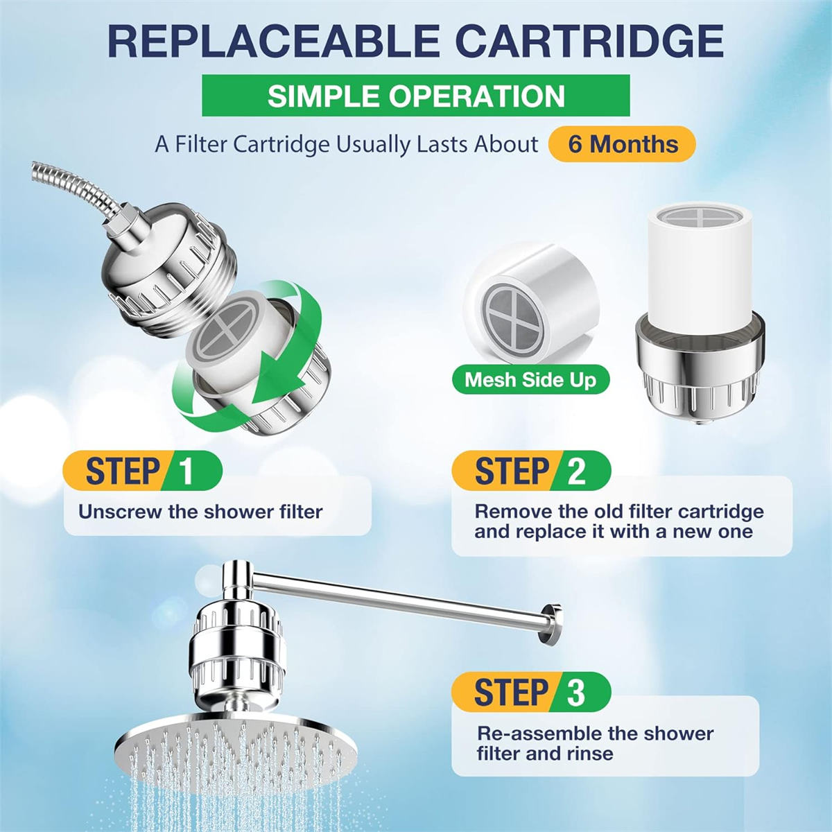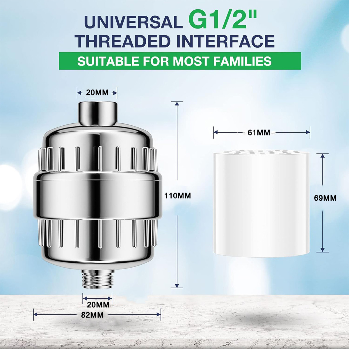 Complete Compatibility: Universal shower filter can be installed in any home, it uses a standard 1/2" thread type. Fit for most rain shower heads, fix shower heads and hand showers.