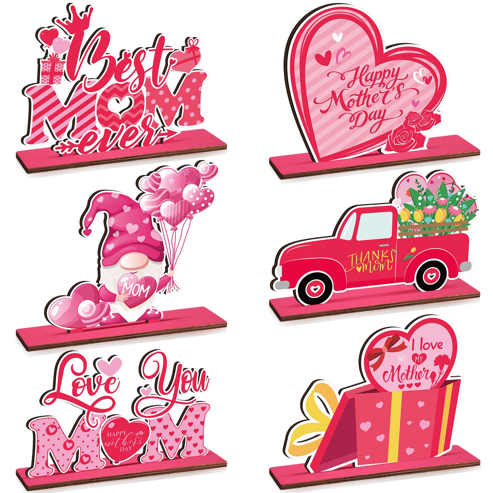 Features: As a gift: The wooden decoration can be placed as a beautiful decoration on your holiday table, you can give them to your mom as a gift and bring her an adorable feeling by placing them in an eye catching place in your home. Table decoration is made of wood materials, clear single side printing, good polishing, no burrs, strong structure, easy to break or wear. Specifications: Material: wood Color: as pictures shown Size: as pictures shown Package : 6 x Mother's Day decoration signs Notes: Manual measurement, please allow slight errors on size. The color may exist a slight difference due to different screen displays.