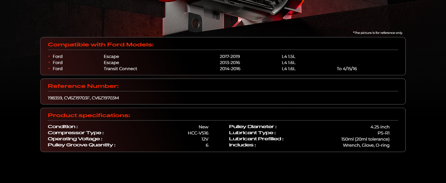 A-Premium A/C Compressor with Clutch for Ford Escape 2013-2019 Transit Connect