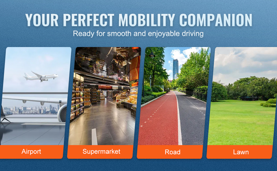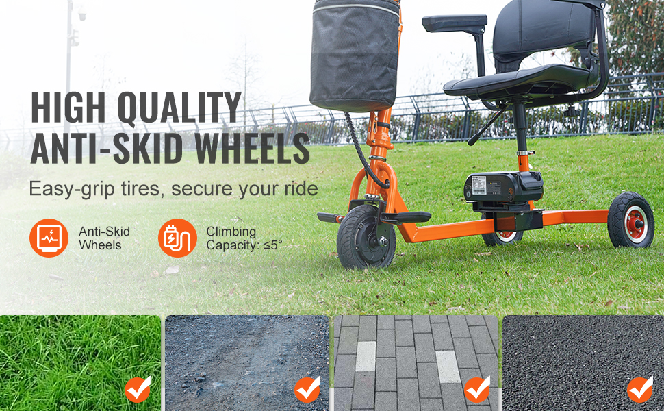 Designed with high-quality anti-slip wheels, providing enhanced traction. With its 8-inch wheel size, meticulously engineered to effortlessly navigate grassy areas, cement paths, and uneven terrain, this electric powered mobility scooter offers unparalleled stability and safety for your travels.
