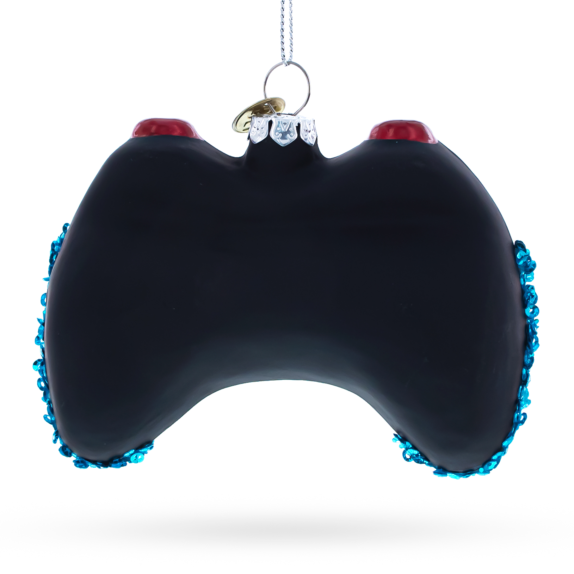 Sleek Black Video Game Controller Glass Christmas Ornament