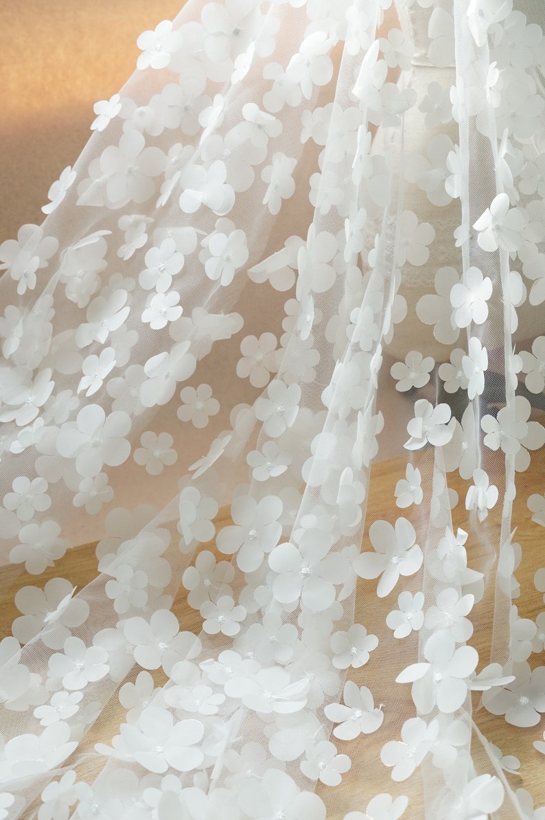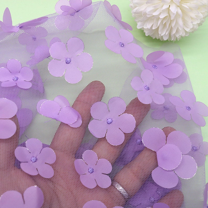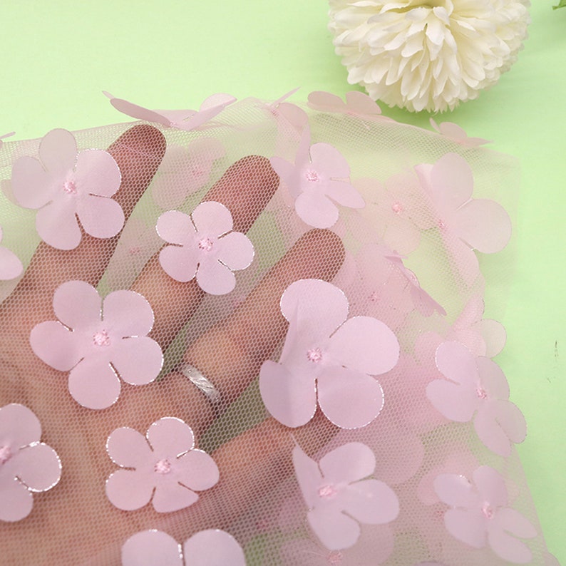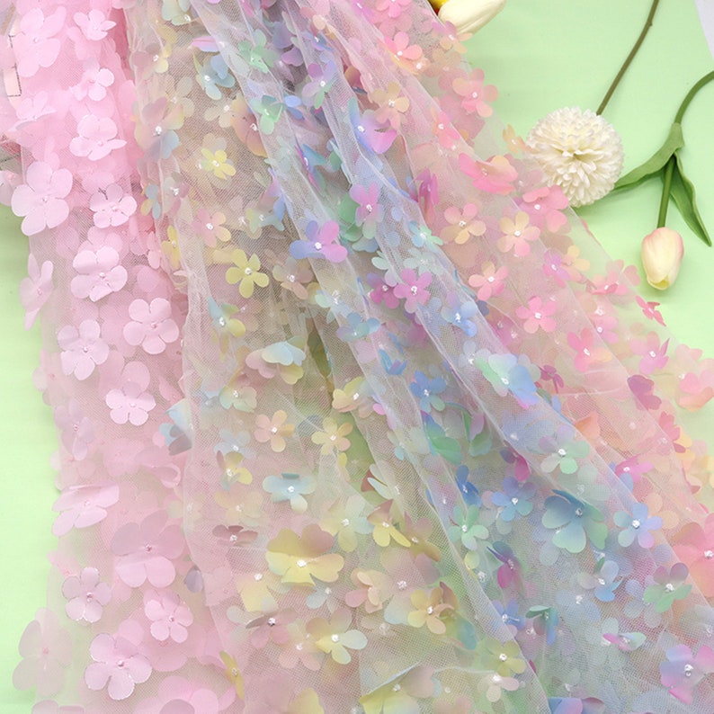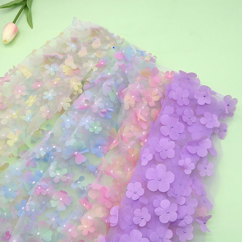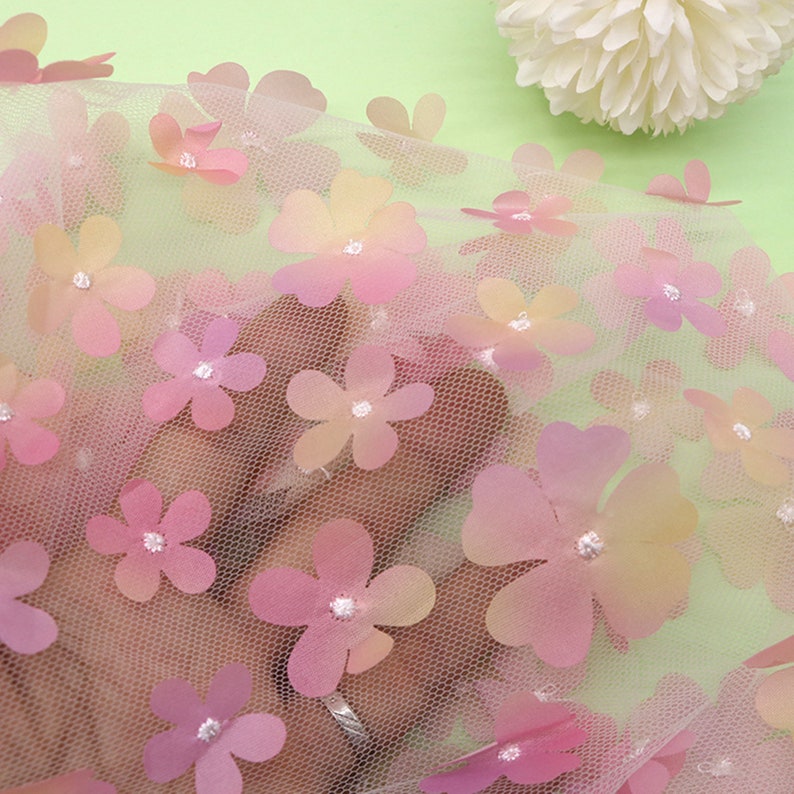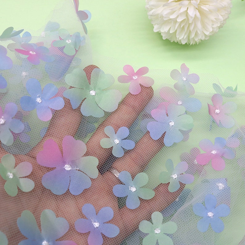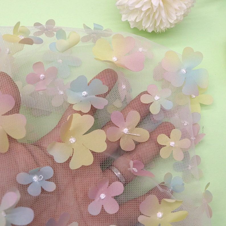 Ombre Delicate 3D Flowers Embroidery on Tulle Fabric for Flower Girl Dress, Doll Dress, Pageant Dress, Wedding Gown 1 Yard