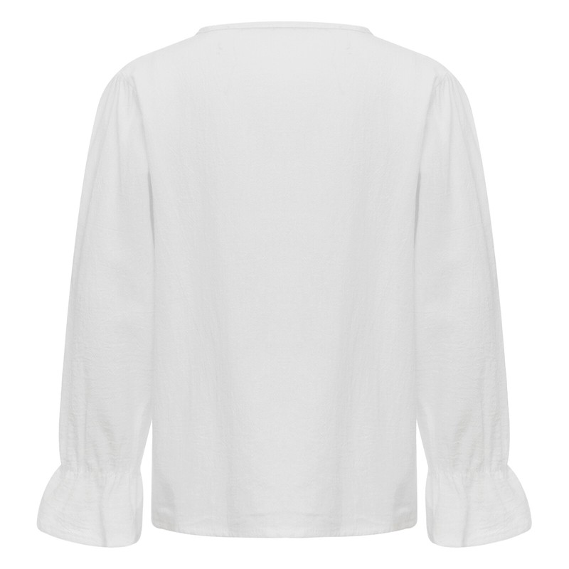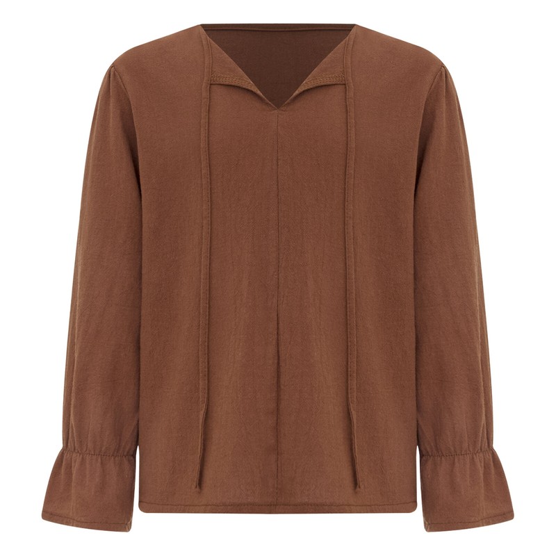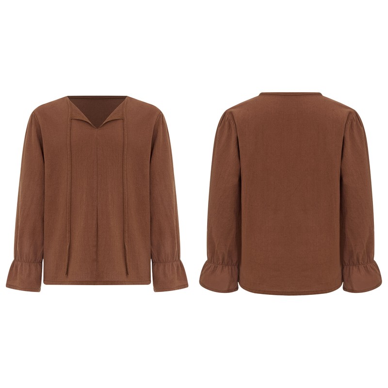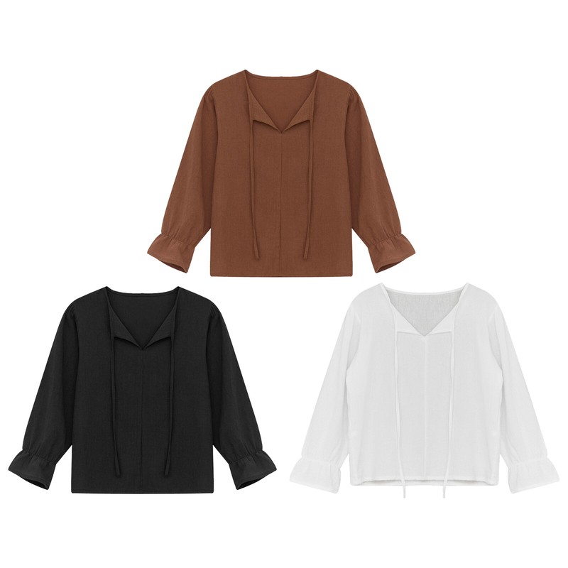 Designed with solid color, v neck with straps, long sleeve, lantern sleeve with elastic ruffle cuff.