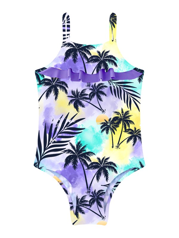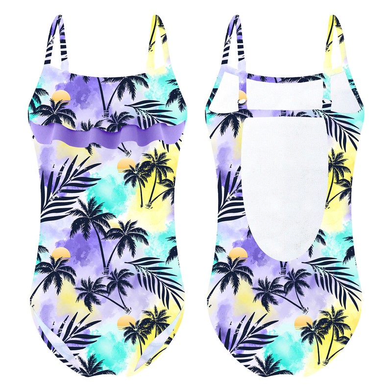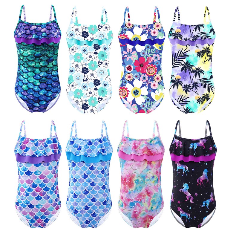 Kids Girls Adjustable Straps Ruffle Hem Fish Scales Horse Print Cut Out Open Back Bodysuit.
