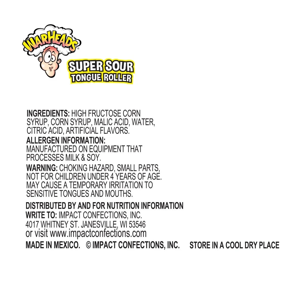 - 12 WarHeads Super Sour Tongue Rollers, each weighing .85 ounces.