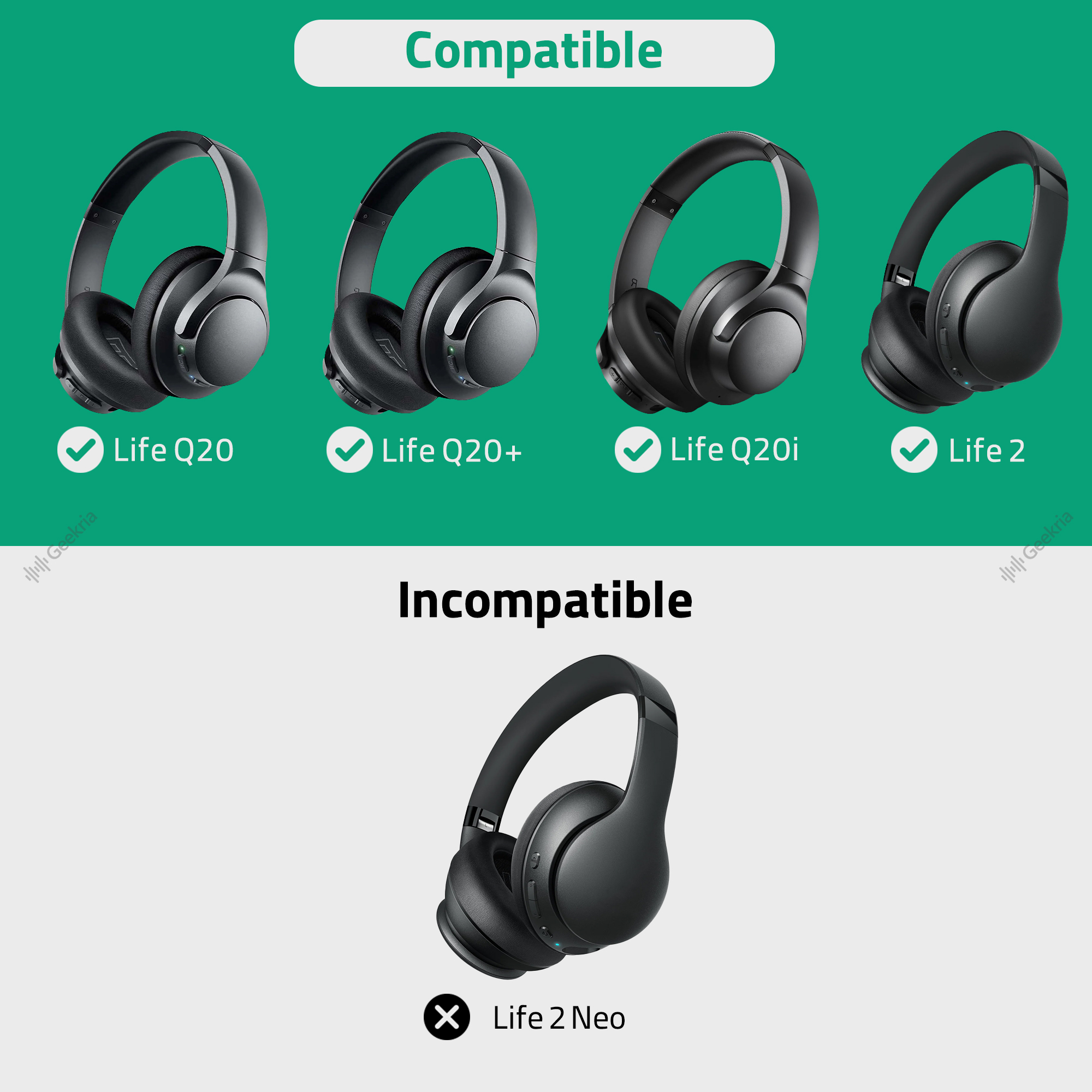- Compatible with Anker Soundcore Life Q20, Life Q20+, Life Q20i, Life 2 replacement earpads.