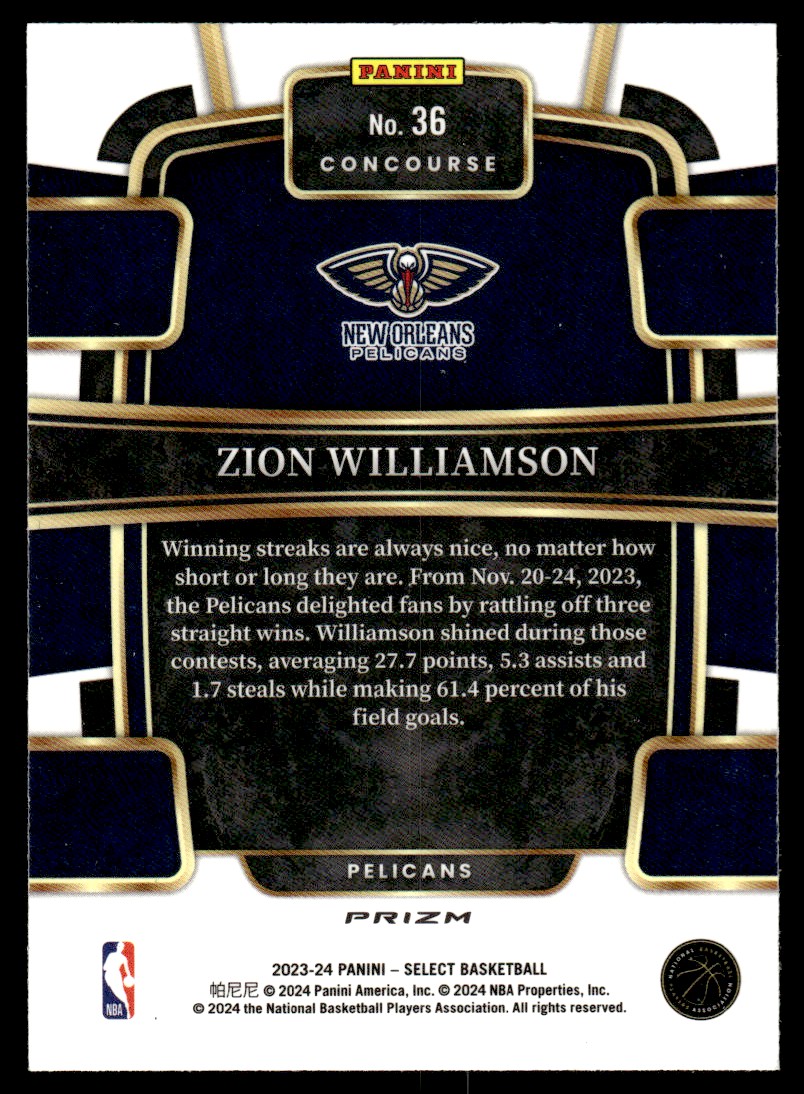 | 2023-24 Panini Select Silver Concourse Zion Williamson New Orleans Pelicans #36 |
