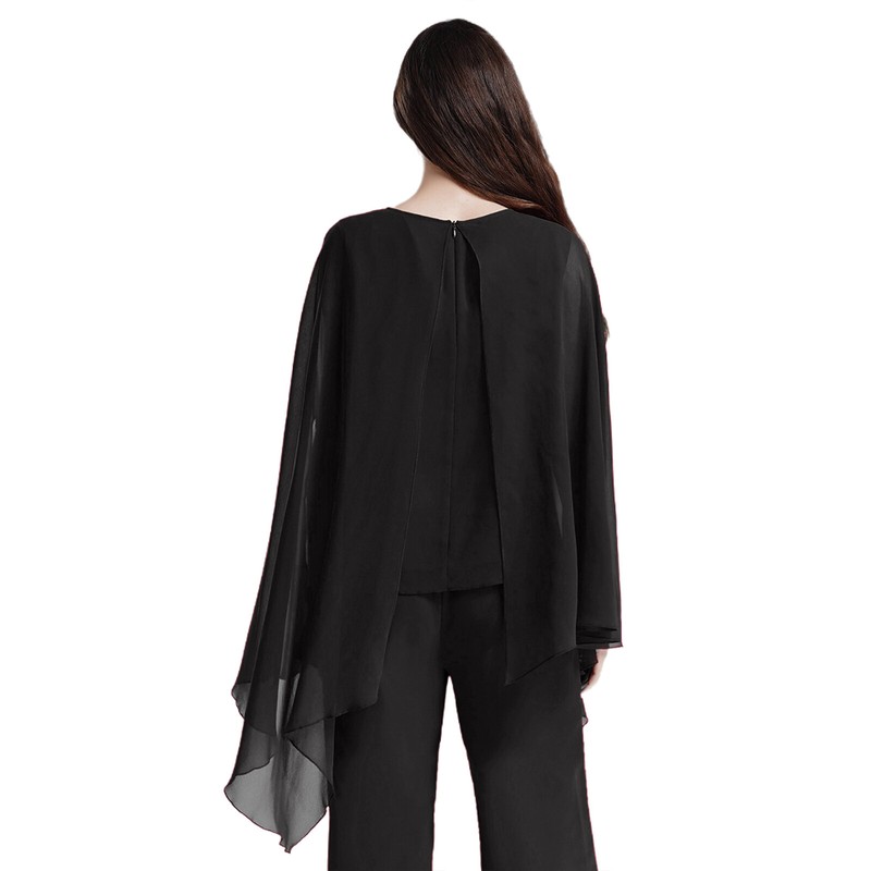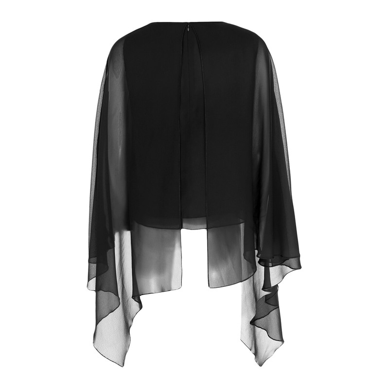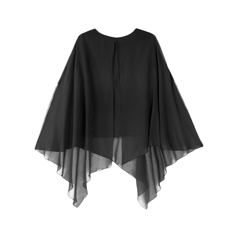 Fake 2-piece design, round neck tank top splices with cape, featuring with shiny neckline, cape sleeve with a little split, irregular hem.
