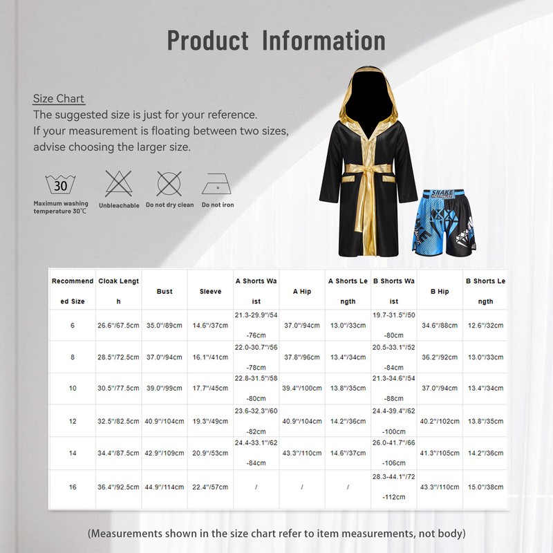 Set Include: 1Pc Boxing Robe, 1Pc Shorts, 1Pc Belt
