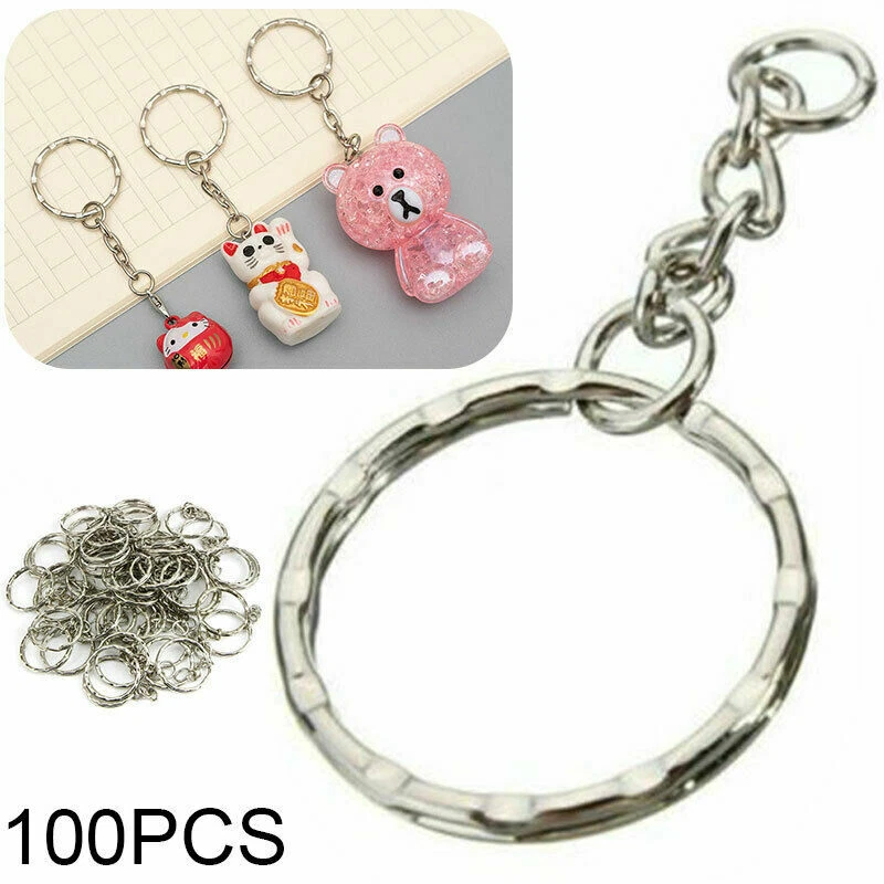 100pcs Silver Keyring Blanks Tone Key Chains Open Split Jump Ring 4 Link Tags