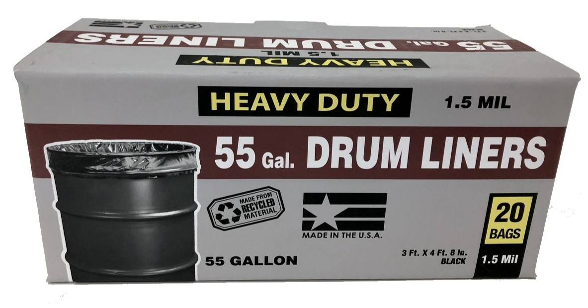 The Revolution Heavy-Duty Drum Liner Trash Bags are great for your yard, garage, shop or storage. Made with recycled material for durability, these drum liner trash bags are ideal for everyday use. The trash bags can hold up to 55 gal. (208.2 L) and come in the classic color black.
