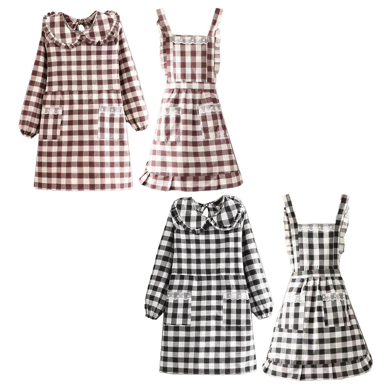 Set Include two styles: doll collar long sleeve smock apron and sleeveless apron.