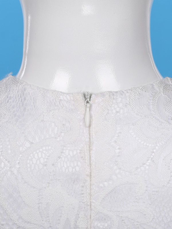Designed with round neck, long sleeve, see-through waistline, floral lace with eyelash trim, smooth lining and back zipper closure.