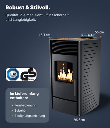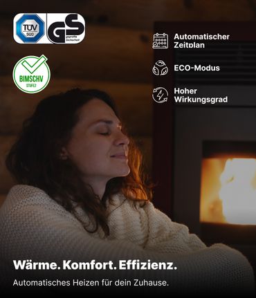 Der Ofen ist für den ausschließlichen Wohnraumbetrieb ausgelegt und erfüllt die Anforderungen der Ecodesign-Verordnung 2022 sowie der 1. und 2. Stufe der BImSchV. Dank automatisierter Funktionen, Wochenprogramm und ECO-Modus lässt sich der Heizbetrieb komfortabel an den Alltag anpassen – ohne ständiges Nachregeln.