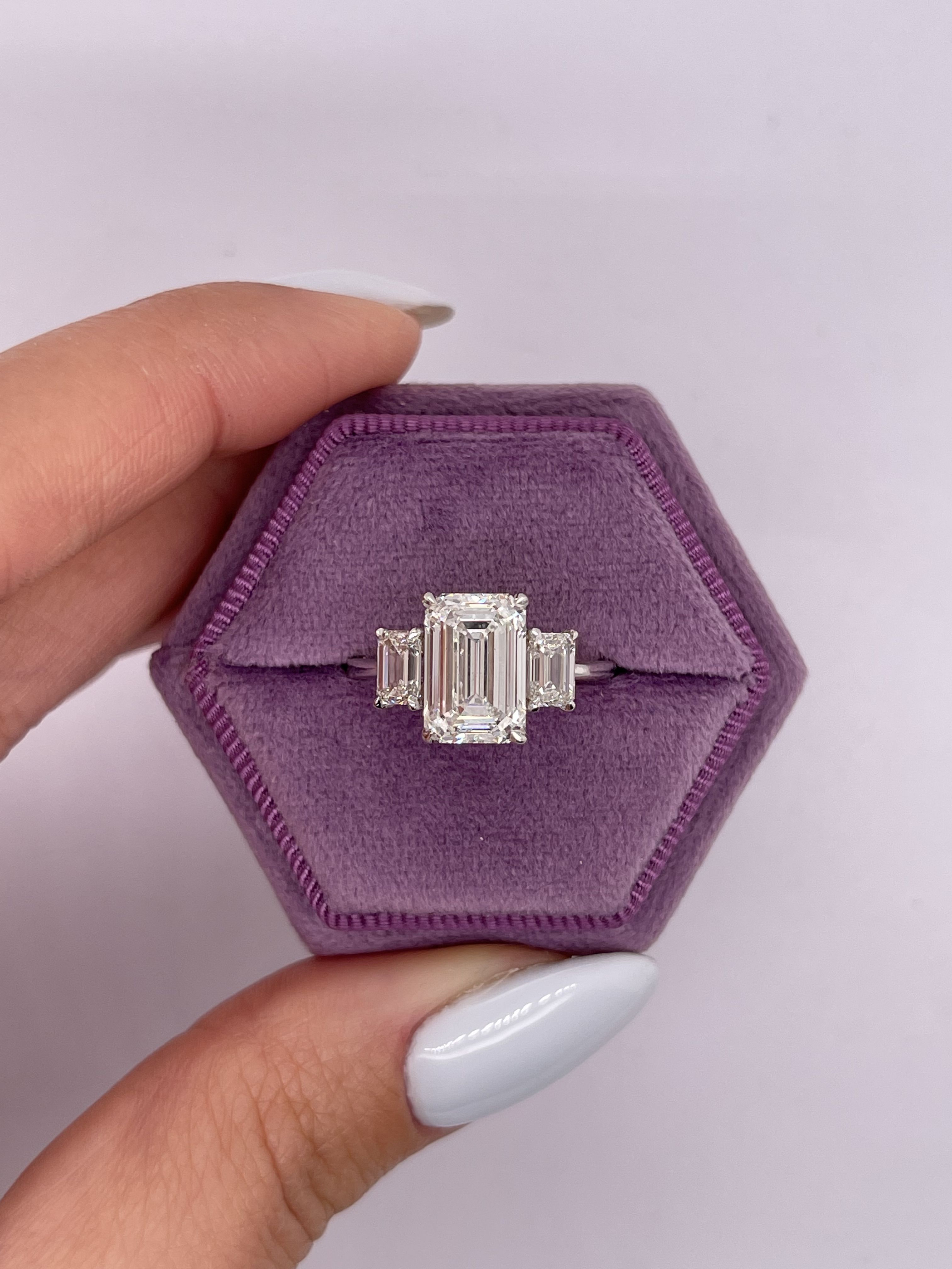 Diamond Engagement Ring VVS2 E Emerald Cut 3.60 Ct Lab Created IGI Platinum