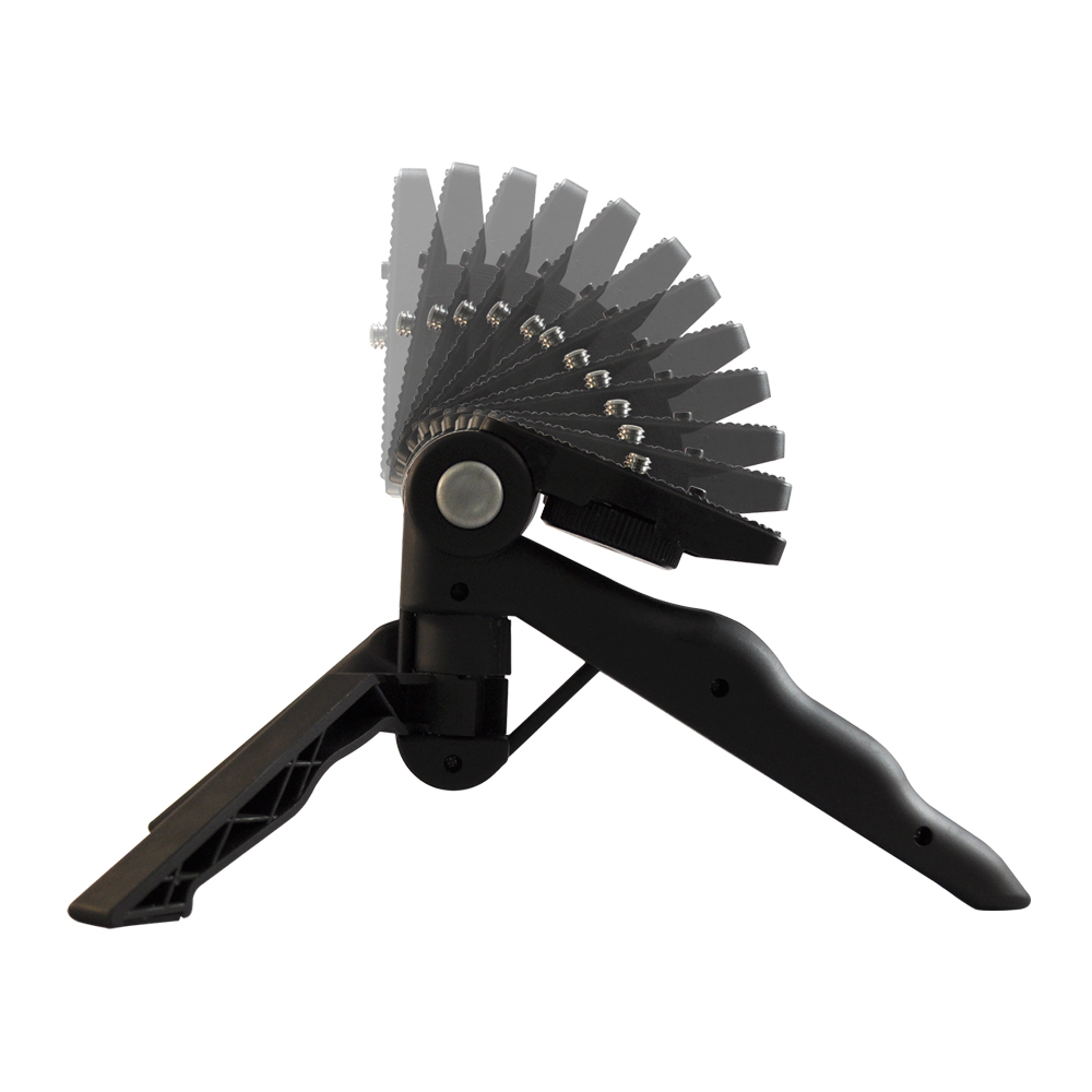 Crafted from hard, durable, rubberized plastic, this hand grip tripod is built to withstand frequent use while remaining light enough to toss in a bag or carry on-the-go. At just 6.5 inches tall, it’s ideal for travel, table setups, interviews, livestreams, overhead shots, or compact studio environments.