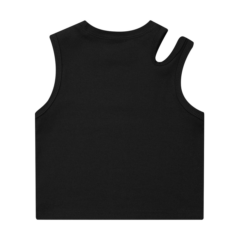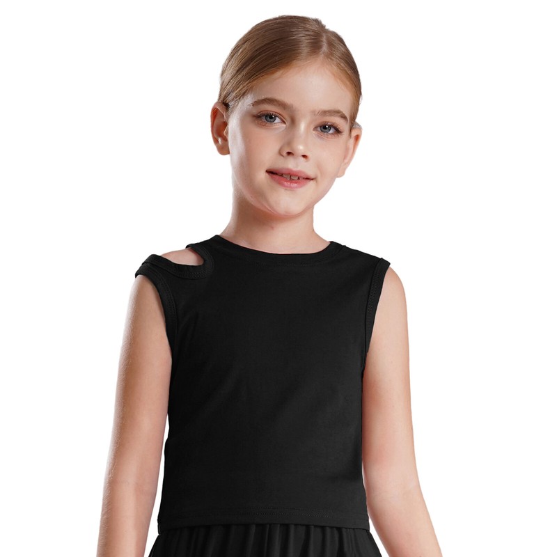 Solid color crew neck tank top for girls, cutout design on one shoulder to looks stylish and unique.