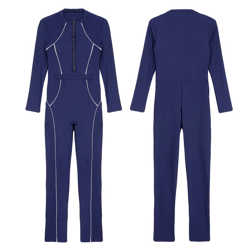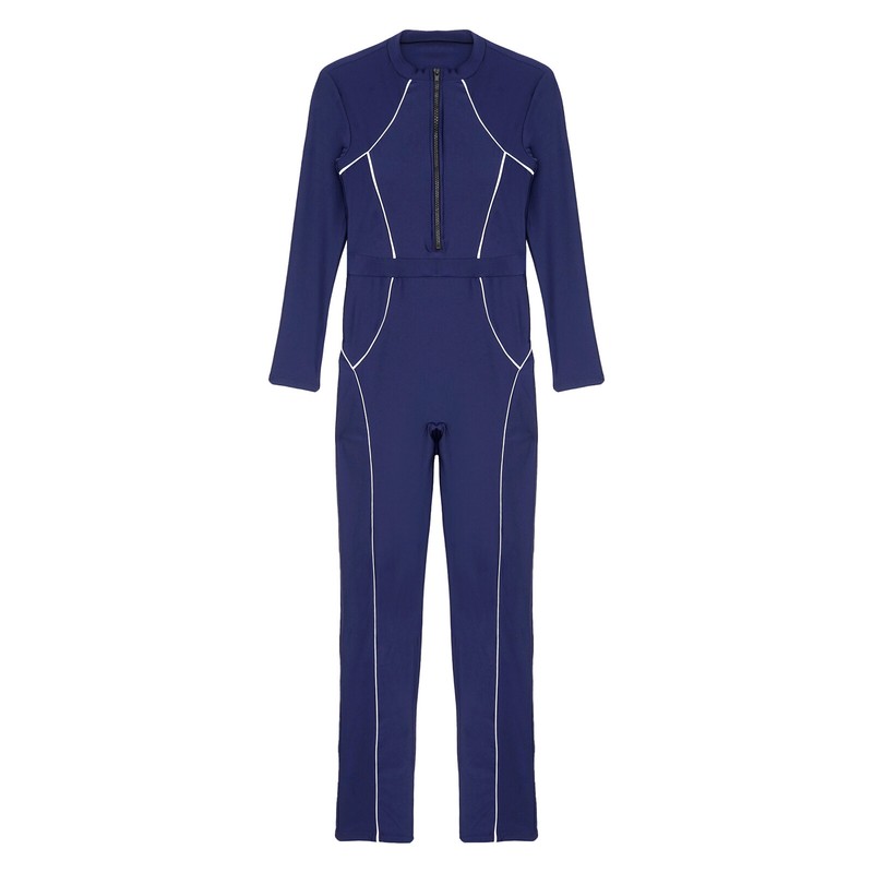 An one piece athletic swimsuit for women, full body long swimwear fits conservative and fashion women.