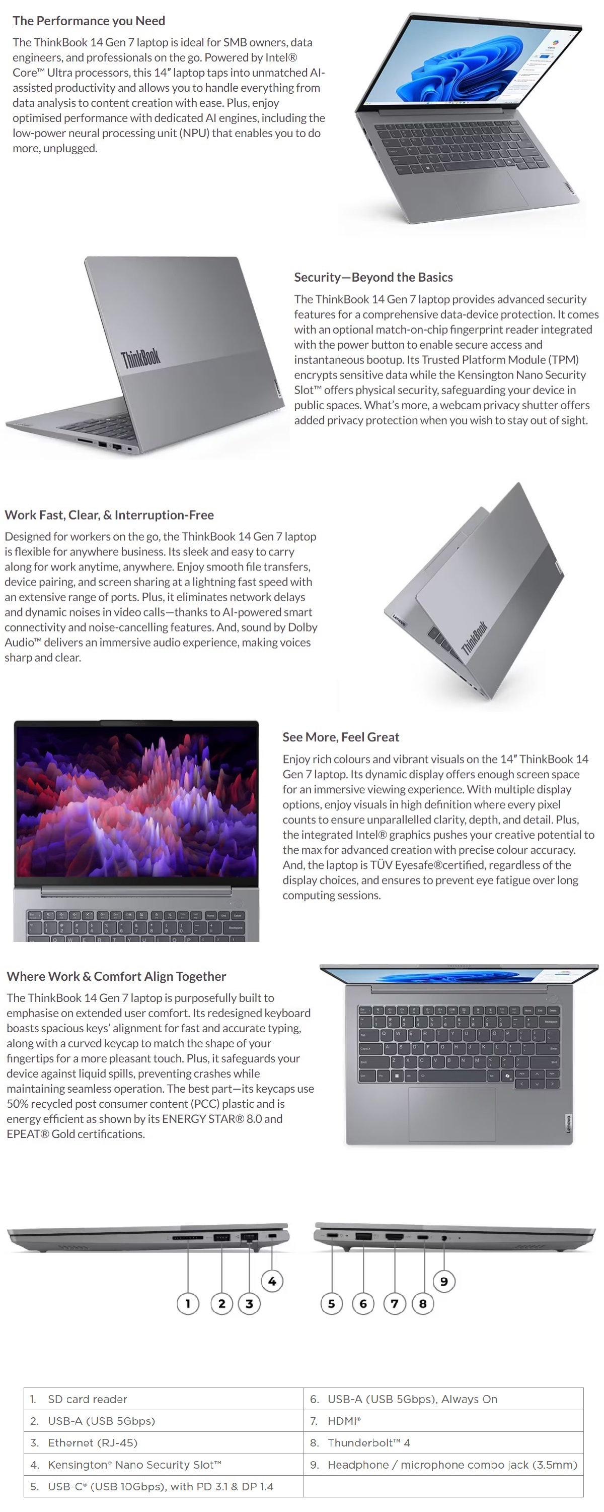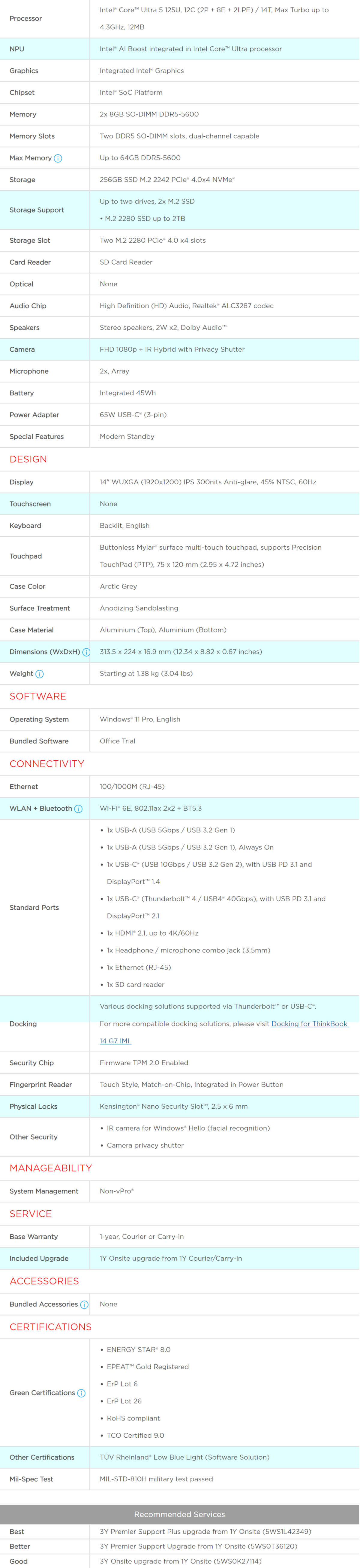 Lenovo ThinkBook 14 Gen7 IML 14" IPS Ultra 5 125U 16GB RAM 256GB SSD W11P Laptop