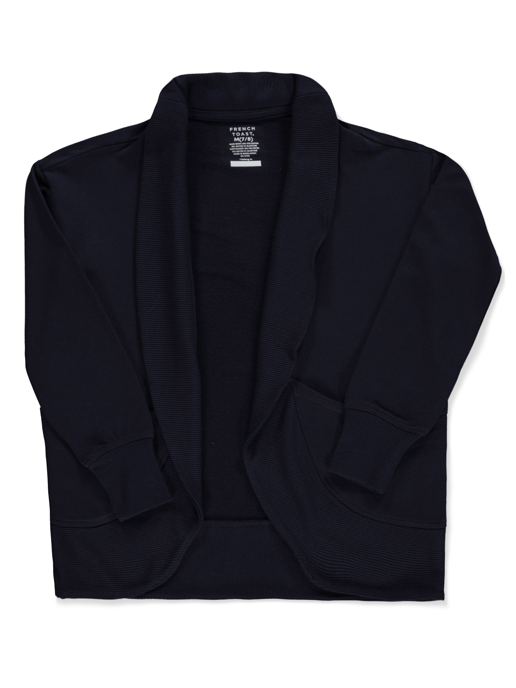 French Toast Girls' French Terry Open-Front Cardigan - navy, 4 - 5