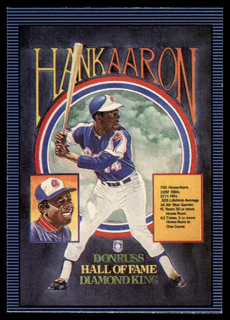 | Description: | Hank Aaron | | Category: | Baseball | | Year: | 1986 | | Product: | Donruss | | Set: | Baseball Card | | Team: | Atlanta Braves | | Card Number: | 602 | | Dimensions: | 3½" x 2½" | | SKU: | BL B0050 R01 O (37) |
