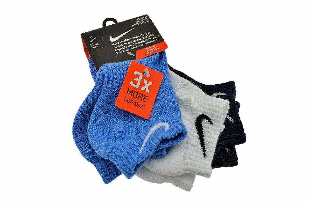 Nike Boys' Performance Cushioned Socks 3 Pack (Small, Navy/White/Blue) ESF17028