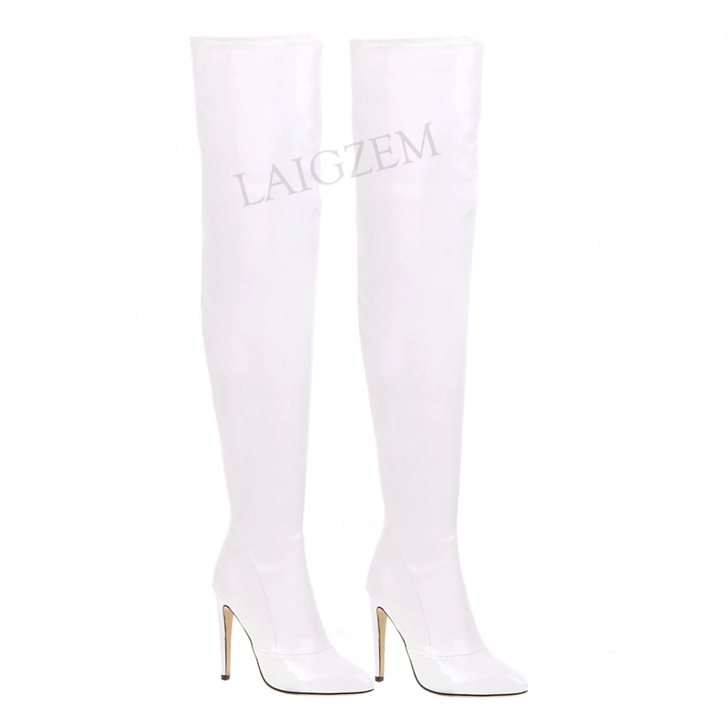 SEIIHEM Women Over Knee Boots Stretchy Side Zip High Heels Shiny Thigh High Boots Club Slim Shoes Woman Big Size 33 39 43 47 49