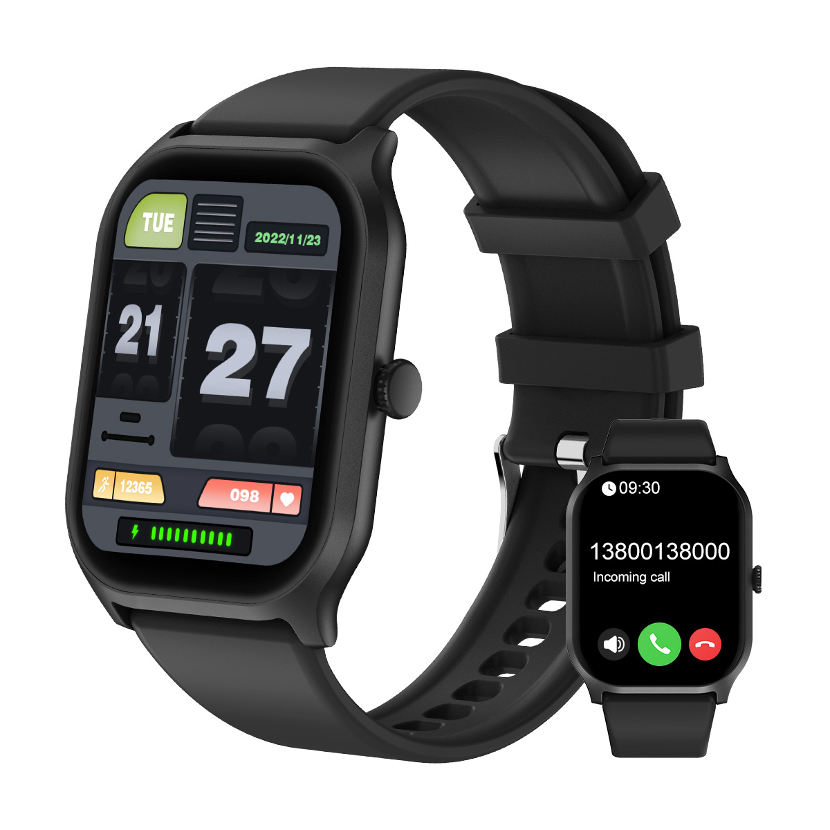The Smart Watch has a battery capacity of 230 mAh and a charging time of 3-4 hours. The watch is unlocked and comes with Bluetooth 5.2 connectivity technology. The band is made of silicone and has a width of 24mm. The case is made of aluminum and plastic and has a size of 52mm. This smartwatch is perfect for those who want to stay connected and track their fitness goals.