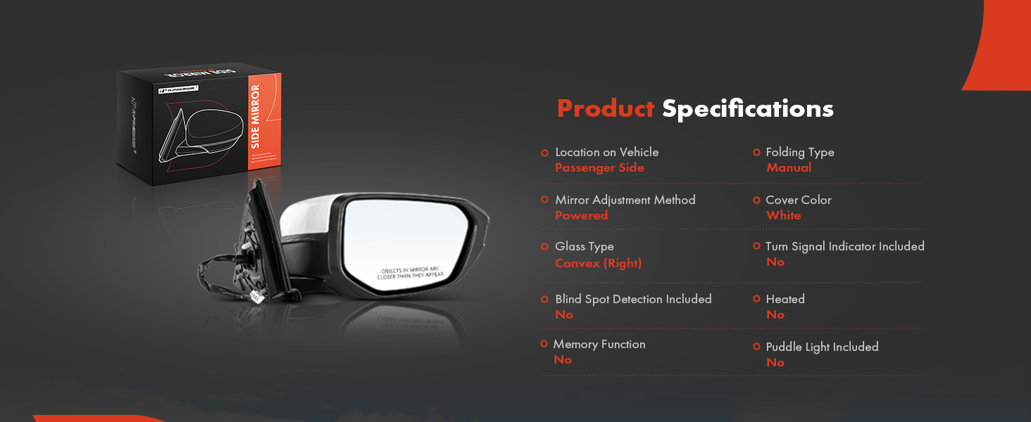 A-Premium White Power Mirror w/ 3Pins Passenger Side for Honda Civic 2016-2021