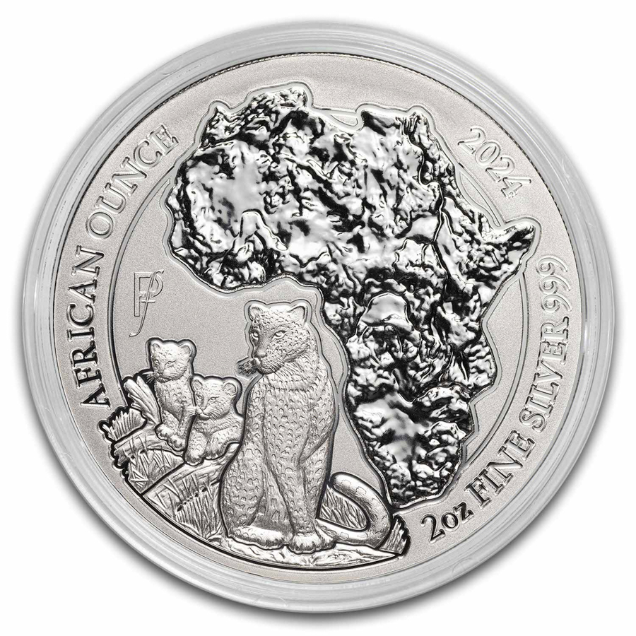 This is the perfect coin for growing any silver collection. Add this 2 oz Silver Rwanda Leopard coin to your cart today!