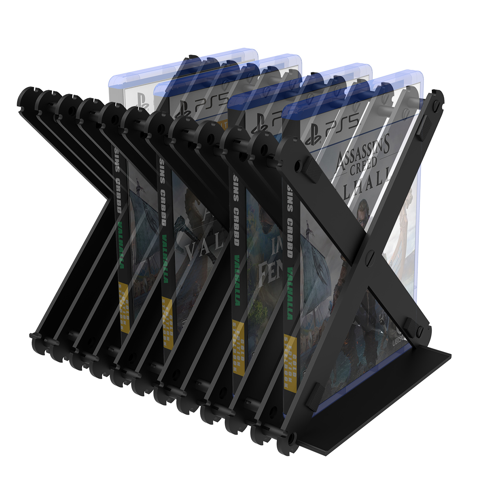The game discs foldable storage rack keeps multiple storage methods and can store up to 11 discs.