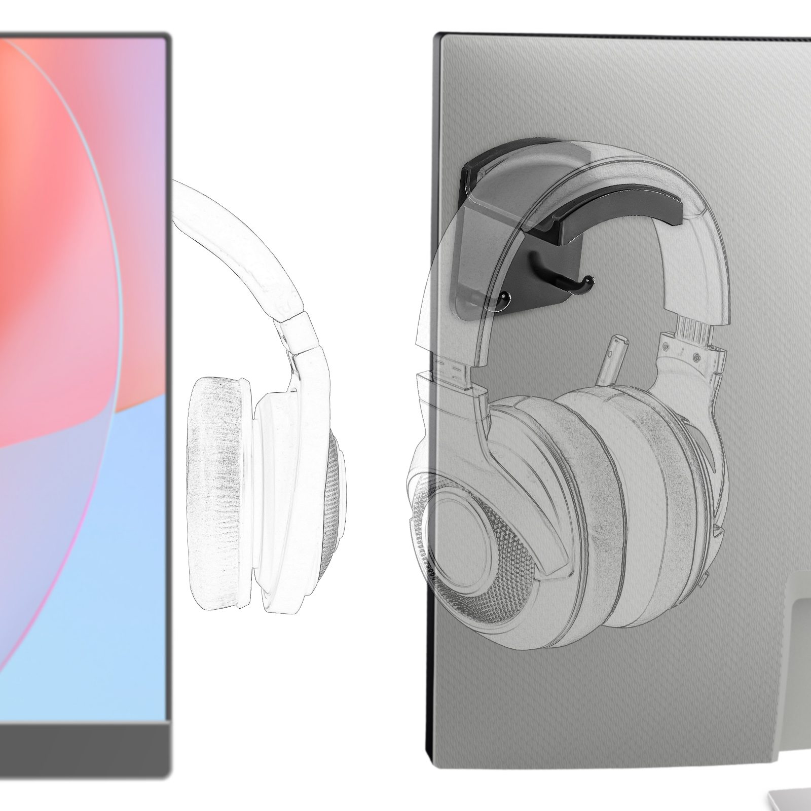 - This headphone hook holder can accommodate headphones with headband width within of 45mm/1.8inches.