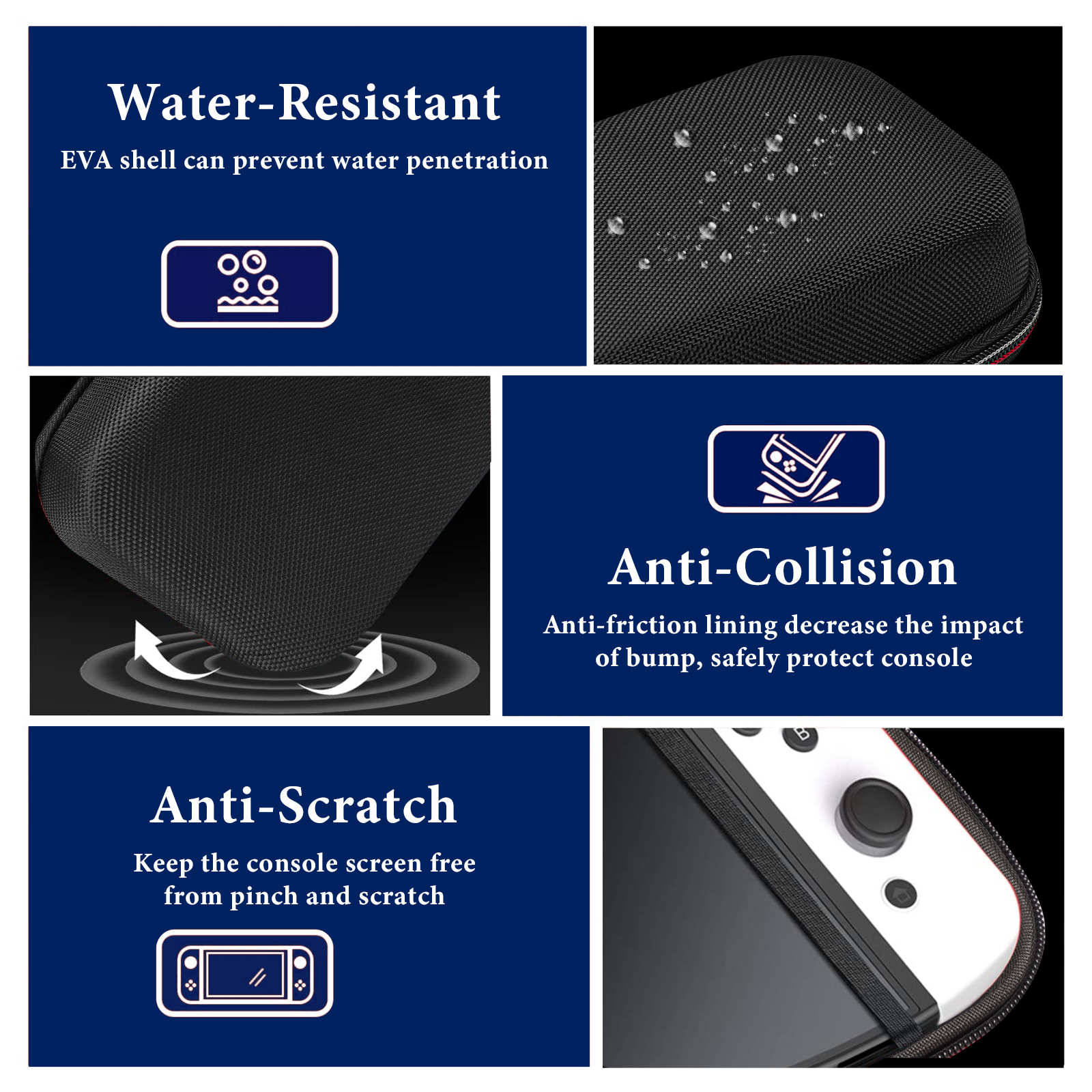 - Double Protection: The storage bag adopts a hard EVA shell, which is durable and can effectively resist compression and deformation. The soft inner lining can provide gentle cushioning for the Switch, ensuring that the device is protected from scratches.