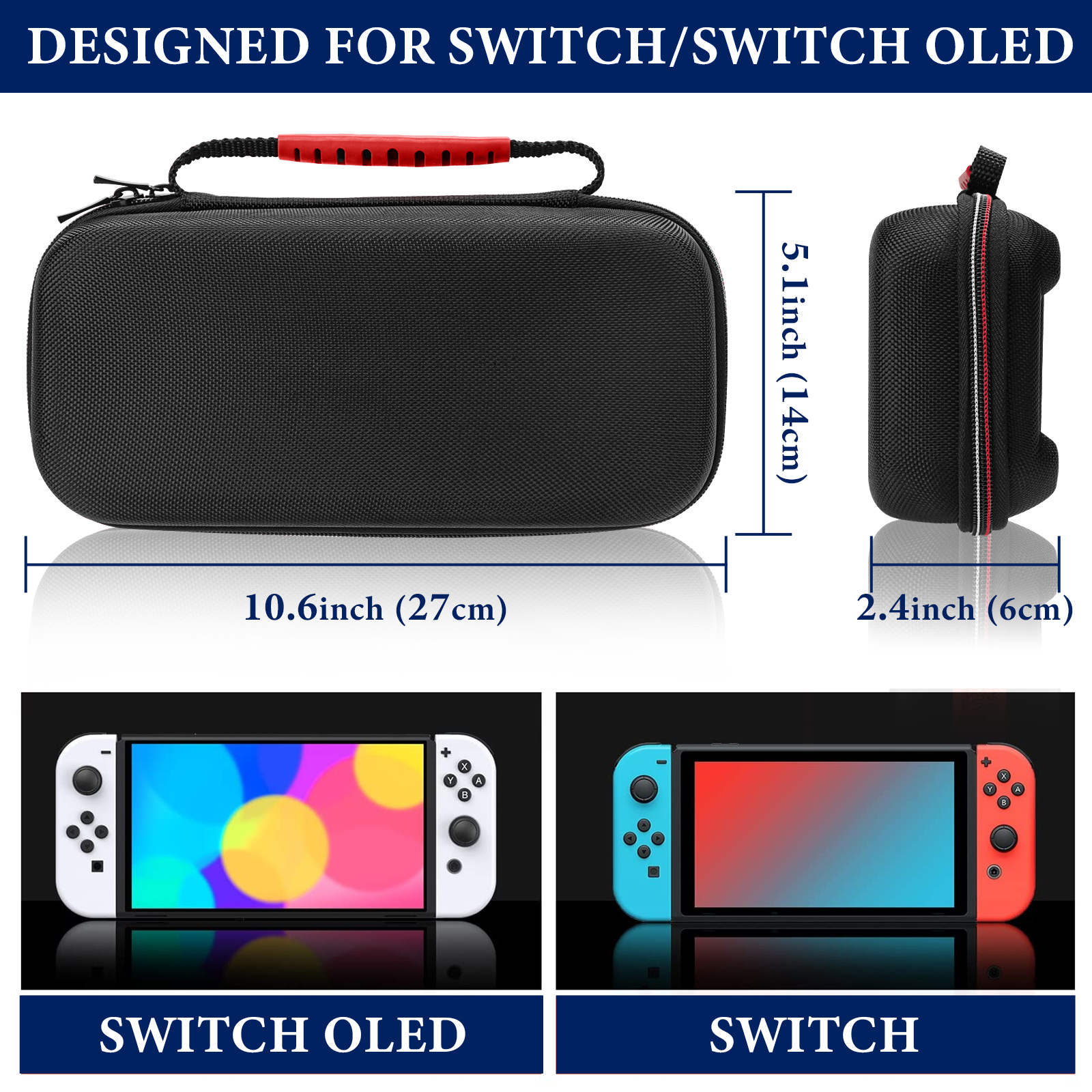 - Product Dimensions: The storage bag measures 10.6 x 5.1 x 2.4 inches. Compatible with Switch and New Switch OLED Console.