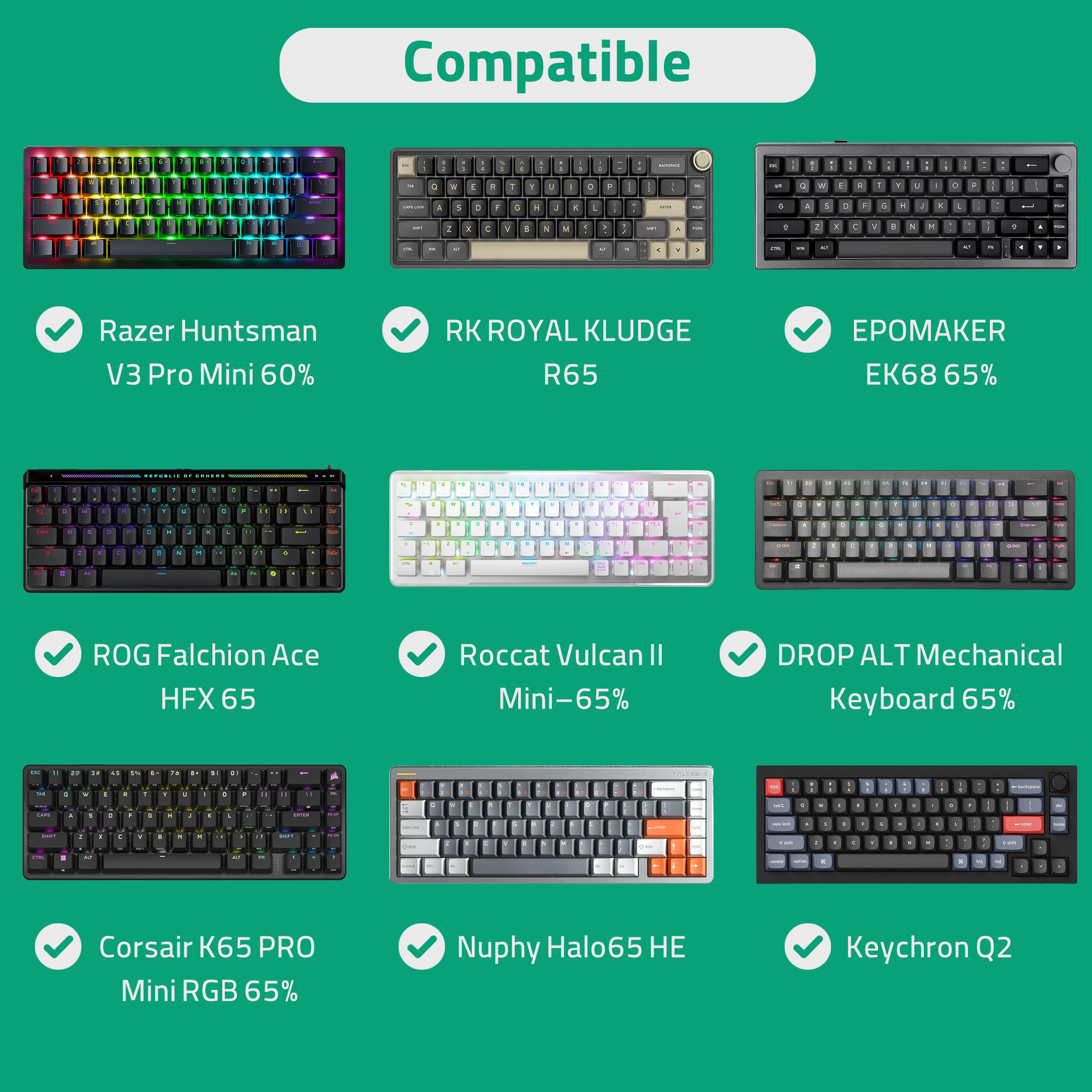 - Compatible with nuphy Halo65 HE, MelGeek MADE68 Ultra, NuPhyX BH65, RK ROYAL KLUDGE R65, EPOMAKER EK68 65%, ALT Mechanical Keyboard 65%, Vulcan II Mini 65%, Fnatic STREAK65, Compatible with ROG Falchion Wireless 65%, YUNZII AL66, Corsair K65 PRO Mini RGB 65% keyboard Case.