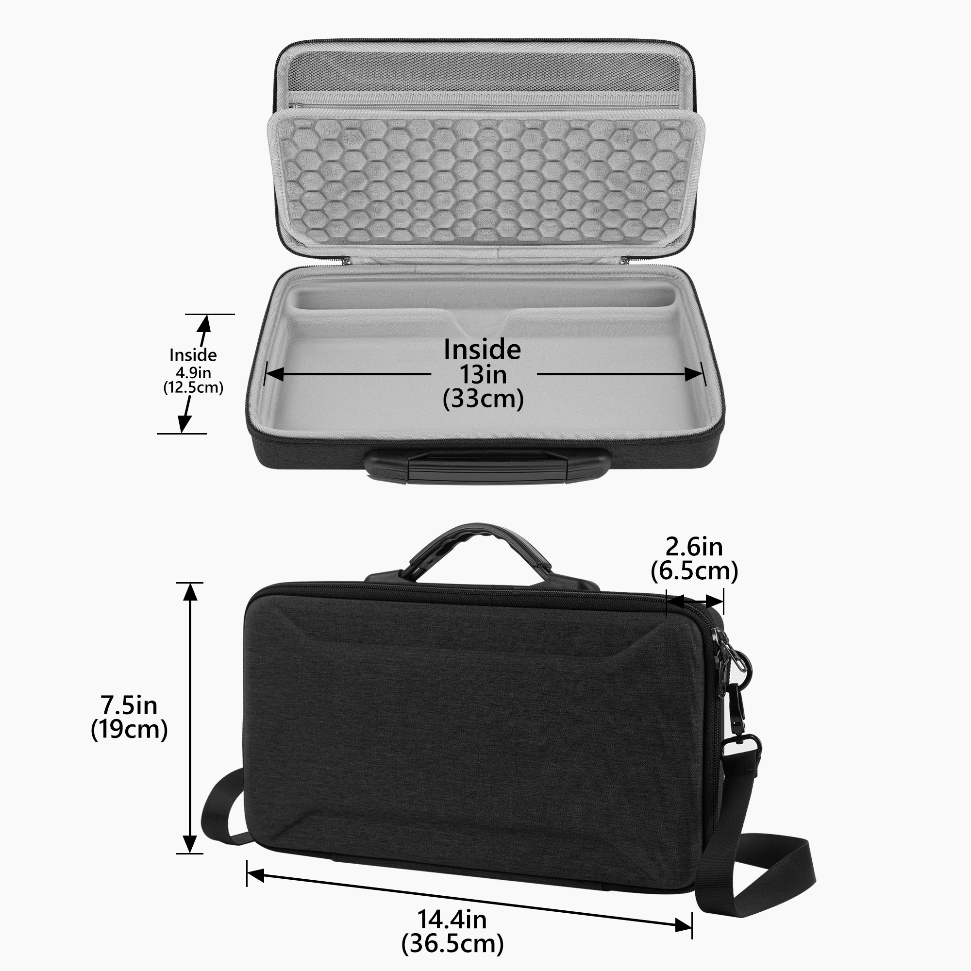 - Maximum compatible keyboard dimensions (case inside): 13 x 4.9 x 1.8 inches (33 × 12.5 × 4.5 cm).